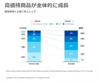 チャネルを問わず、プライベートブランド(PB商品)は流通小売における重要性を再定義しつつ2017年を通じ成長を牽引しました。PB商品は金額において前年対比3%以上成長しつつ、実店舗において1,250億ドル(約13兆円)もの日用消費財売上を占めるに至りました。とはいえ、すべてのPB商品が同様に成長を牽引しているわけではありません。また、すべてのNB商品が売上を落としているわけでもありません。