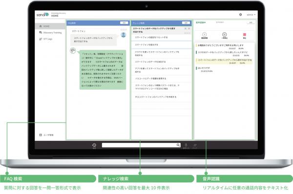 本サービスの特長は電話応対中に必要に応じて会話をリアルタイムでテキスト化し、エージェントが選択した箇所に応じた回答候補をAIが表示することで、エージェントの応対業務をサポートします。