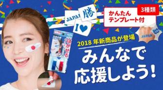 国内でフェイスペイントのイベントとプロダクトをプロデュースする株式会社POOLは、同社がイベントのために開発した、はがせるボディペイント絵具「ミラクルペイント」に、個人が会場で手軽にスポーツ応援を楽しめる「日本応援ペイント+ステンシルセット」(450円+消費税)を新たにラインナップ。6月1日より全国発売を開始(ダイレクトストアでは5月29日(火)注文受付開始)する。