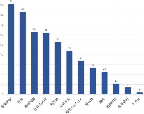 「会社選びにおいて重視していること」の回答1位はやはり「事業内容」で18.2%ですが、