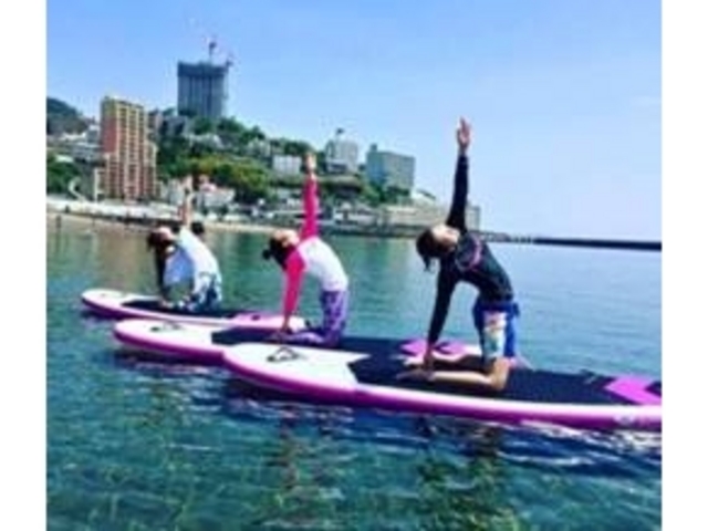 近年では、SUPボードを用いたSUPヨガが注目を浴びており、水の上で揺れながらヨガをすることで体幹が鍛えられることや、自然の中で自分の体や心と向き合い、太陽や風を感じながら笑顔になることを求めて多くの体験希望者よりお問い合わせを頂いております。