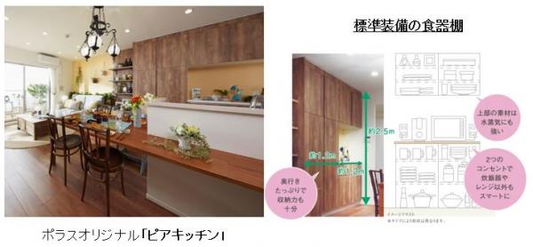 目指したのは、「住まいの真ん中に、家族がいる空間づくり」。ブランドの象徴である「ピアキッチン」は、キッチンとリビングダイニングを独自の形で一体化させたプランで、発売以来お客様からの圧倒的な支持を得ています。さらに、収納力だけではなく、インテリアとしても美しい大容量の備え付け食器棚を標準装備にし、家事に忙しい子育て世帯にとって使い勝手の良い、スッキリとした「見せる収納」を実現しました。