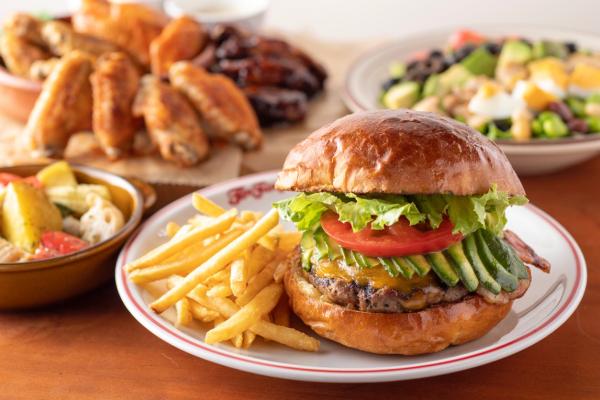 4種のフレーバーで味わう「チキンウイング」 600円(4ピース / 税別)やハッシュドポテトフライの「トッツ」380円(税別)など、サイドメニューが充実しているのも特徴の一つです。3種のアイスと生クリーム、バナナをまるごと1本乗せたデザート「バナナスプリット」780円(税別)なども登場します。また、コーヒーやカフェラテなどのほか、3種のフレーバーの「ミルクシェイク」680円(税別)や「クリームソーダ」580円(税別)、ビールやカクテルなどのドリンクメニューも豊富にご用意しています。おひとりでの利用はもちろん、豊富なサイドメニューをみんなでシェアしてパーティスタイルで楽しんだり、夜は仕事帰りの一杯とハンバーガーで締めるなど、昼から夜まで幅広いシーンを演出します。