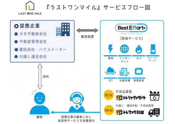 不動産会社やハウスメーカー(住宅企業)に向けた新サービス『ラストワンマイル』を2018年2月1日より提供しています。『ラストワンマイル』は不動産企業との業務提携により、引越し運送やライフラインの契約手配など引越しにともなう顧客の諸手続きを当社が一括案内するサービスです。