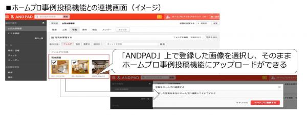 今回新たに「ANDPAD」に保存された画像データをホームプロの事例投稿画面に自動連携する機能を活用することで、施工現場の写真をノンストップで登録できるようになります。スピーディーかつ正確に事例画像を登録でき、作業効率が高まります。