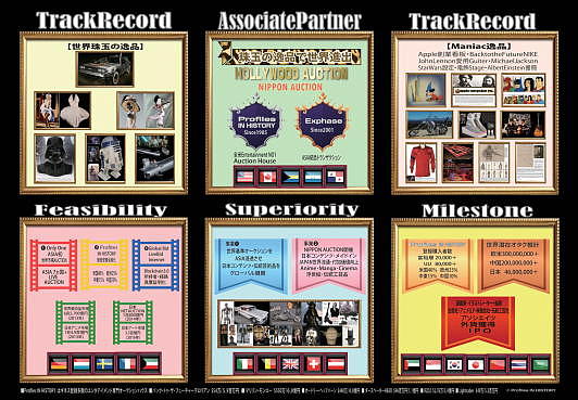 プロファイルズインヒストリーは、創立35年を迎える米国屈指のエンターテイメントオークションハウスであり、多数のギネス登録を誇るプラットフォーマーです。その世界富裕登録者数は約10万人を超え、すでに米国、欧州、中東、東南アジアの富裕層ネットワークを構築しております。また、ブロックチェーン3.0技術を最大限活用した真贋、製作年、著者、所有者履歴、購買履歴を管理し、日本芸術品に付帯させる計画です。今後、イクスフェイズはCool Japanの提唱する「世界戦略」の実現に向け事業化していきます。また、全国有志者のライブビューイング開催地も募集しています。