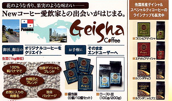 南米パナマで再発見された新種豆「GEISHA種」極めて生産性が低く栽培当初は農園の脇役でした。GEISHA種は「HighestQualtyCoffee」最高峰と言われ世界で最も注目を集めている品種です。エチオピア原種のGEISHA種が世界の魅了したのは2004Bestof Panamaオークションで1£/21$という最高落札されたことが切欠です。