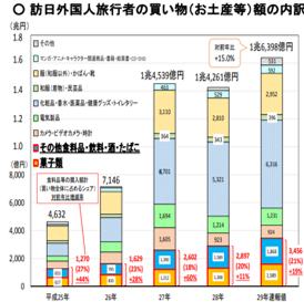 日本政府観光局が発表した2018年4月の訪日外国人旅行者数は、前年同月比12.5%増の290万 1,000人で、単月として過去最高を記録し、年々増加傾向にあります。また、農林水産省が発表した平成29年訪日外国人旅行者の購入状況の資料によると、日本滞在中の旅行消費額のうち、お土産等の買い物代が最も多く、全体の約4割で1兆6,398億円。そのお土産代の中でも菓子類は1589億円と、昨年比で19%の伸びとなっています。このように訪日客にとってのお菓子土産需要が高まっており、インバウンド消費を牽引していることが分かります。
