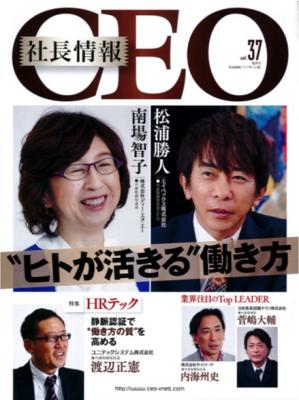 『CEO 社長情報』は、元『週刊ダイヤモンド』編集長で、生前のピーター・ドラッカーをはじめとして数多くの国内外の経営者にインタビューした株式会社ブイネット・ジャパン 代表取締役社長の松室哲生氏が編集人となり、隔月刊で経営者向けに発刊している雑誌です。 今勢いのある企業を直接取り上げる内容で、多くの経営者の方々に読まれ、企業間のビジネスマッチングを促進しています。当社は、本誌を Vol.30(2017 年 3 月 31 日発売)から松室氏と共に刊行しております。