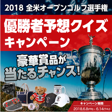 さらに、昨年同大会2位タイの松山英樹プロの優勝が期待される大会開催に合わせ、『2018全米オープンゴルフ選手権優勝者予想クイズキャンペーン』の応募を6月8日(金)から6月14日(木)まで実施します。