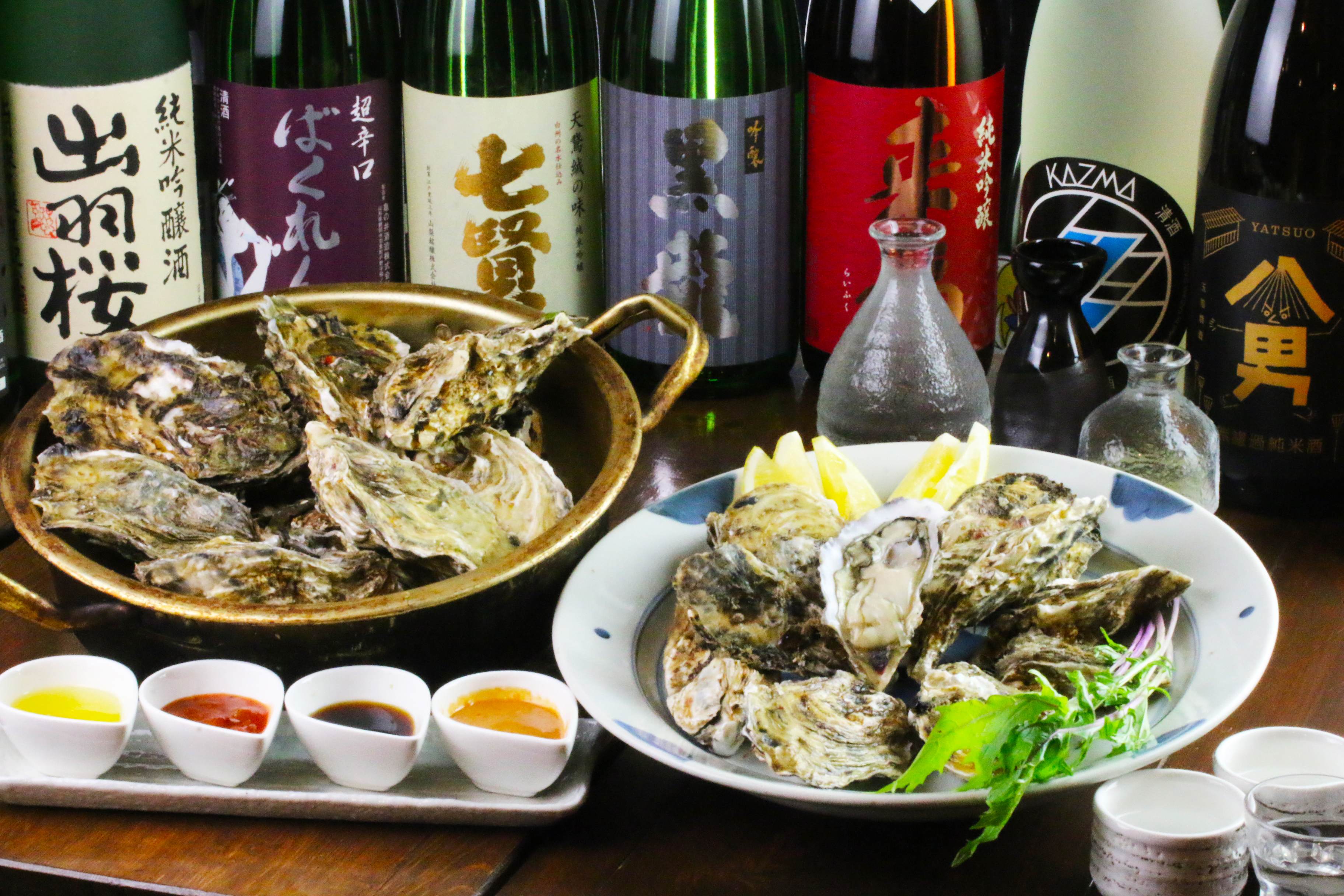 日本酒50種飲み放題、2時間2000円(席料、税別)をご利用した方に限り、蒸牡蠣1個200円(2個
