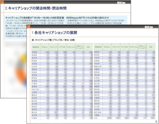 本レポートは、キャリア各社の店舗網を分析することにより、各社の顧客接点確保の状況を明らかにすることを目的としている。あわせて、営業時間や定休日など、店舗の負荷実態の現状を追った。分析に用いた店舗一覧をデータとして添付することで、独自の分析・集計も可能にした。