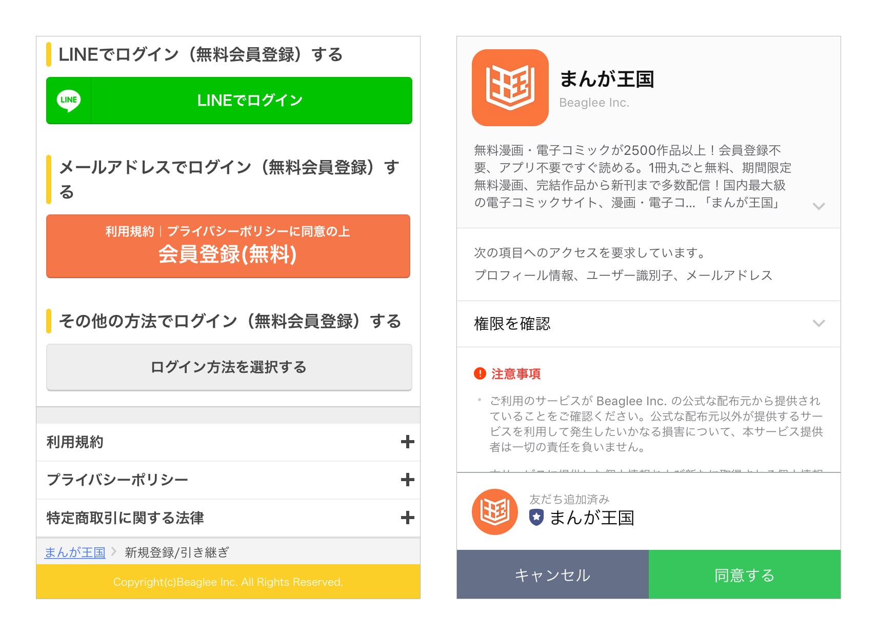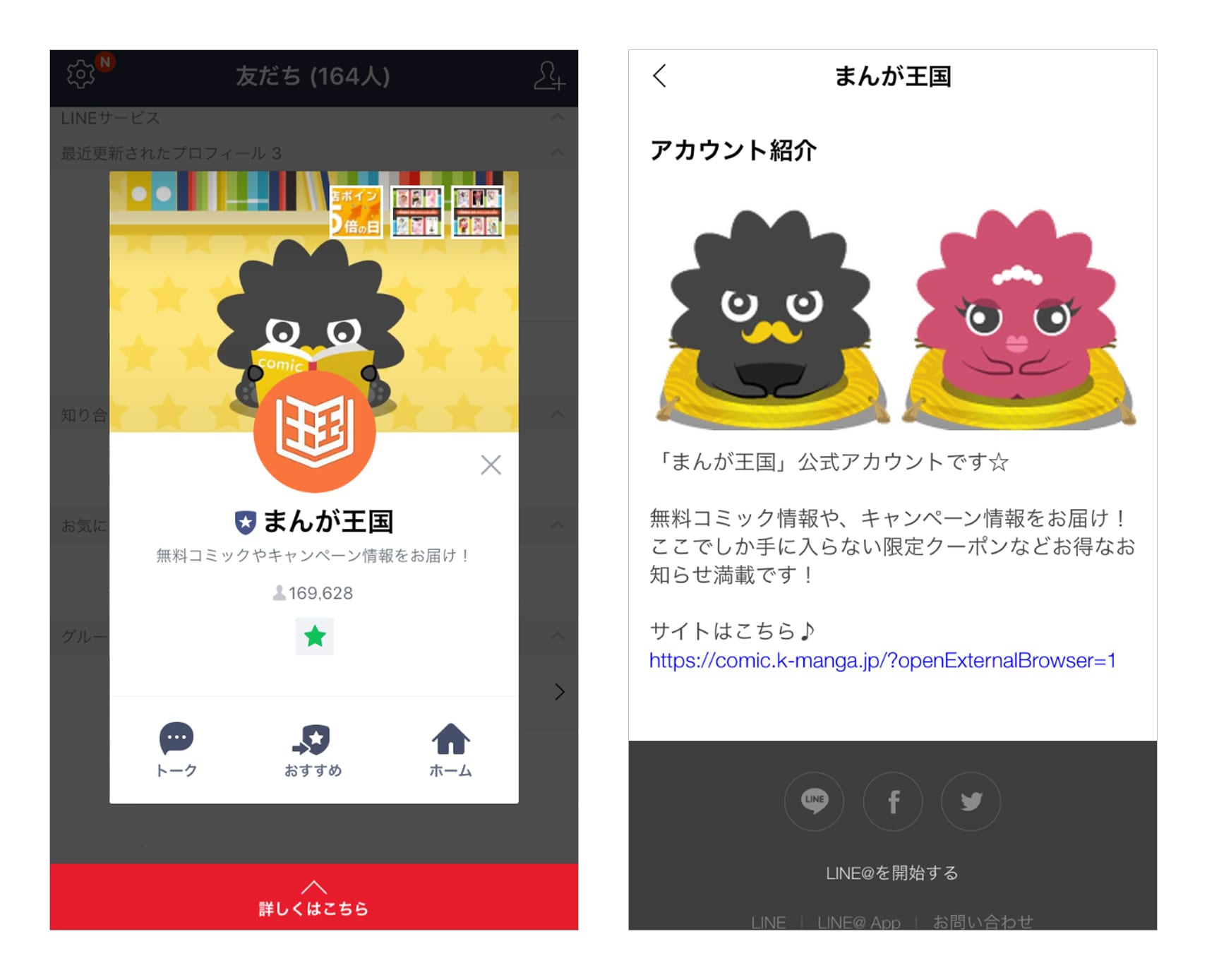 また「LINEログイン」を行うと同時に、『まんが王国』LINE@アカウントを友だち追加することが可能となっており、友だち追加率も向上いたしました。