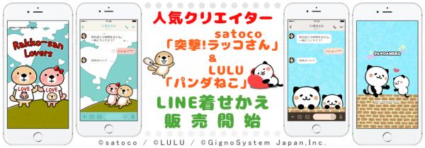 当社では、クリエイターのマネジメント事業を行っており、SNSで大人気のキャラクターのライセンスを管理しております。 今回はマネジメントをしているクリエイターのsatoco(代表作:突撃!ラッコさん)、LULU(代表作:パンダねこ)のLINE着せかえを販売開始。 今後も続々配信予定です。