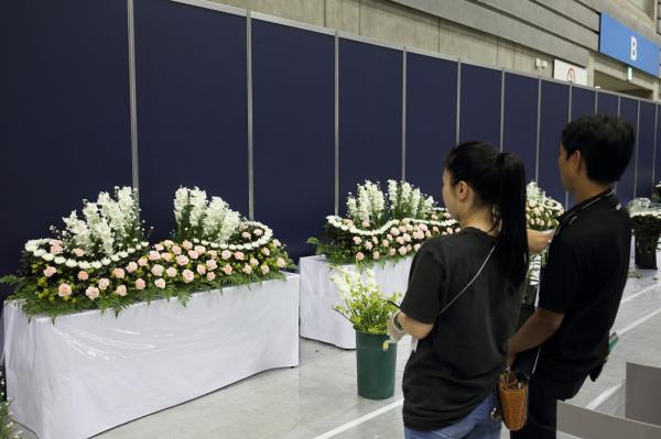 オリジナル生花祭壇設営をはじめ、切り花用鮮度保持剤やインターネット花市場、関連書籍など必見アイテム、最新情報が一堂に。