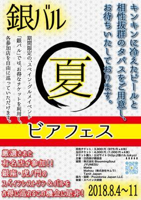 『銀バル』Vol.3 のテーマは、”夏・ビアフェス” です!『銀バル』の各参加店では、参加者の皆様に、夏の暑さを吹き飛ばしていただけるよう、「キンキンに冷えたビールと、相性抜群のタパス」をご用意し、お待ちいたしております!