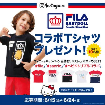 『サンリオキャラクターズ × FILA × BABYDOLL』トリプルコラボTシャツをお好きなキャラクターとサイズで10名様に各1枚プレゼント。