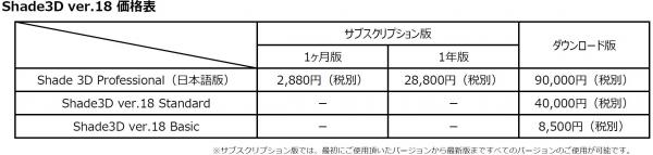 Shade3Dはver.18より、ダウンロード版と1ヶ月単位から利用可能なサブスクリプション版の2種類となります。建築・製造業界をはじめ、様々な業種で表現豊かで利便性の高い3DCADのニーズが高まる中、「Shade3D」を通して3DCADを始めるきっかけを少しでも多くの方にご提供できれば幸甚です。