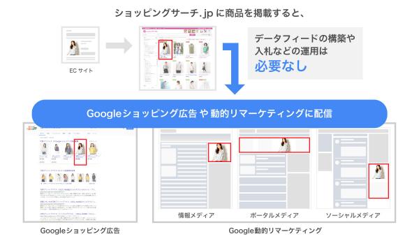 ECサイトの集客・売上拡大を支援するコマースリンク株式会社(本社:東京都大田区、代表取締役社長:藤田 由希子)は、同社が提供する商品検索サイト「ショッピングサーチ.jp(※)」に商品掲載するだけで、Googleショッピング広告や動的リマーケティング広告を配信できる商品掲載サービスを、2018年6月15日(金)から提供開始しました。