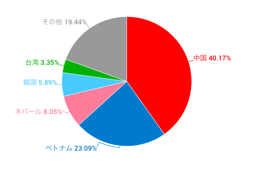 2018年5月時点で日本への留学生の数は、26万7,042人。過去5年、連続で増加傾向にあります。留学生を出身国別に見ると、1位が中国(10万7,260人)、2位がベトナム(6万1,671人)、3位がネパール(2万1,500人)、4位が韓国(1万5,740人)、5位が(台湾8,947人)※1となっており、アジア圏の経済成長が著しい国からの留学生が多いことが分かります。少子高齢化が加速する日本において訪日留学生を獲得することは、その国の成長や未来を左右する非常に重要な課題と言えます。