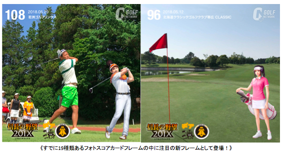 110万人のゴルファーが愛用する国内No.1ゴルフアプリ「ゴルフネットワークプラス」で使える各種サービスの中で、プレー後に多くのゴルファーがSNSに投稿するのが人気のフォトスコアカード機能。アプリに登録した自分のラウンドスコアと、撮影したお気に入りのゴルフ写真をかんたんに合成して、ゴルフ仲間同士での共有やSNS投稿ができるこのサービスの新フレームに、今回のコラボのために描き下ろされた『ゴルファー風秀吉』と『キャディ風ねね』のフレームが新登場、6月19日(火)よりご利用が可能となります。