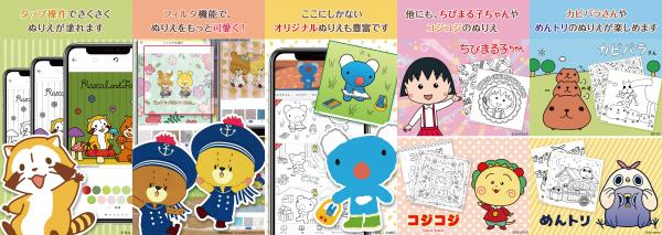 本アプリは企画、開発を株式会社シーエー・モバイル、ぬりえコンテンツのアグリゲーションをインクルーズ、コンテンツ制作はインクルーズと株式会社シーエー・モバイルが担当し、タイトルの通り、様々な大人気キャラクターを起用し、スマートフォン上で塗り絵が楽しめるアプリとなっております。