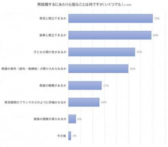 このように、まずは家庭、次に働く環境づくり、最後に待遇面、という順に再就職への心配を抱えることが分かった。