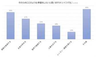 では、こうした心配を抱える中、再就職に向けてどんな準備を行いたいと考えているのだろうか。結果を見てみると、1位、3位、5位に自己啓発系の選択肢が入っているのが印象的である。ブランクが空いたため、穴埋めとして自己のスキルを高めようという意識がうかがわれる。