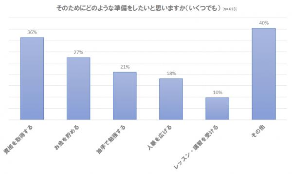 では、こうした心配を抱える中、再就職に向けてどんな準備を行いたいと考えているのだろうか。結果を見てみると、1位、3位、5位に自己啓発系の選択肢が入っているのが印象的である。ブランクが空いたため、穴埋めとして自己のスキルを高めようという意識がうかがわれる。