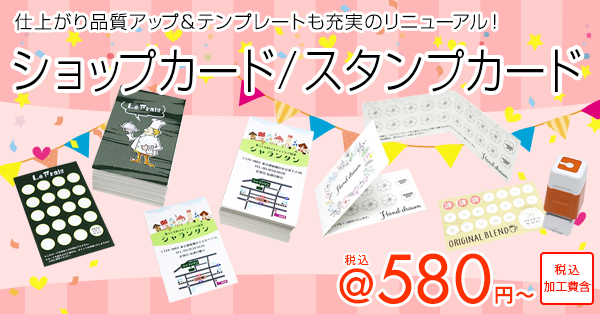 従来品のプリント品質を見直し、より鮮やかなフルカラープリントを実現しました。また用紙の種類にも注目し、ラインナップを追加!ショップカードにはマットで落ち着いた風合いを持ち、可読性に富んだ「マットコート紙」、スタンプカードにはプリントが鮮やかな光沢面と、インクの定着しやすいマットな面を持った「ミラーマット紙」をご用意しております。詳しくは各商品ページをご覧ください。