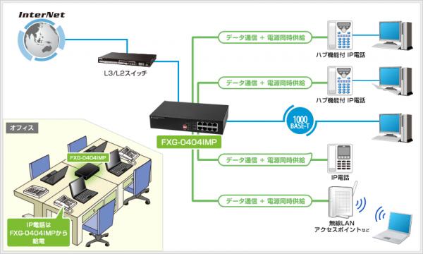 現行製品『FX-0404IMP2』の後継機となり、PoE機能の性能はそのままで、全ポートギガビットに対応しました。