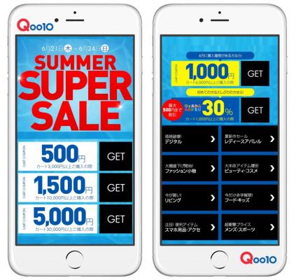 インターネット総合ショッピングモール「Qoo10」は、夏物がどっさり集まった「SUMMER SUPER SALE」を、2018年6月21日(木)~6月24日(日)に開催します。SALE開催期間中には、Qoo10を初めてご利用される方や、久しぶりにご利用される方を対象にした、特別割引クーポンをプレゼントします。さらに先着限定で毎日、最大5,000円割引されるクーポンを配布します。