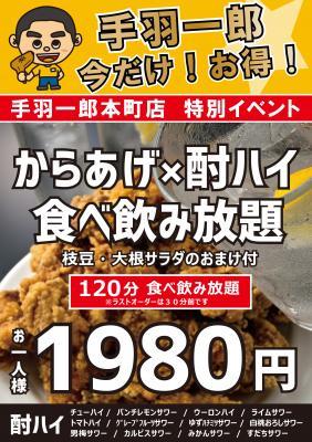 ■手羽一郎本町店の「からあげ」食べ放題イベント 「酎ハイ13種類」も飲み放題!