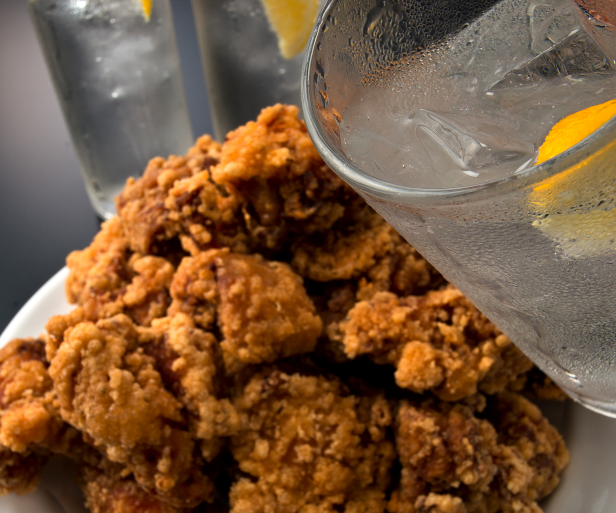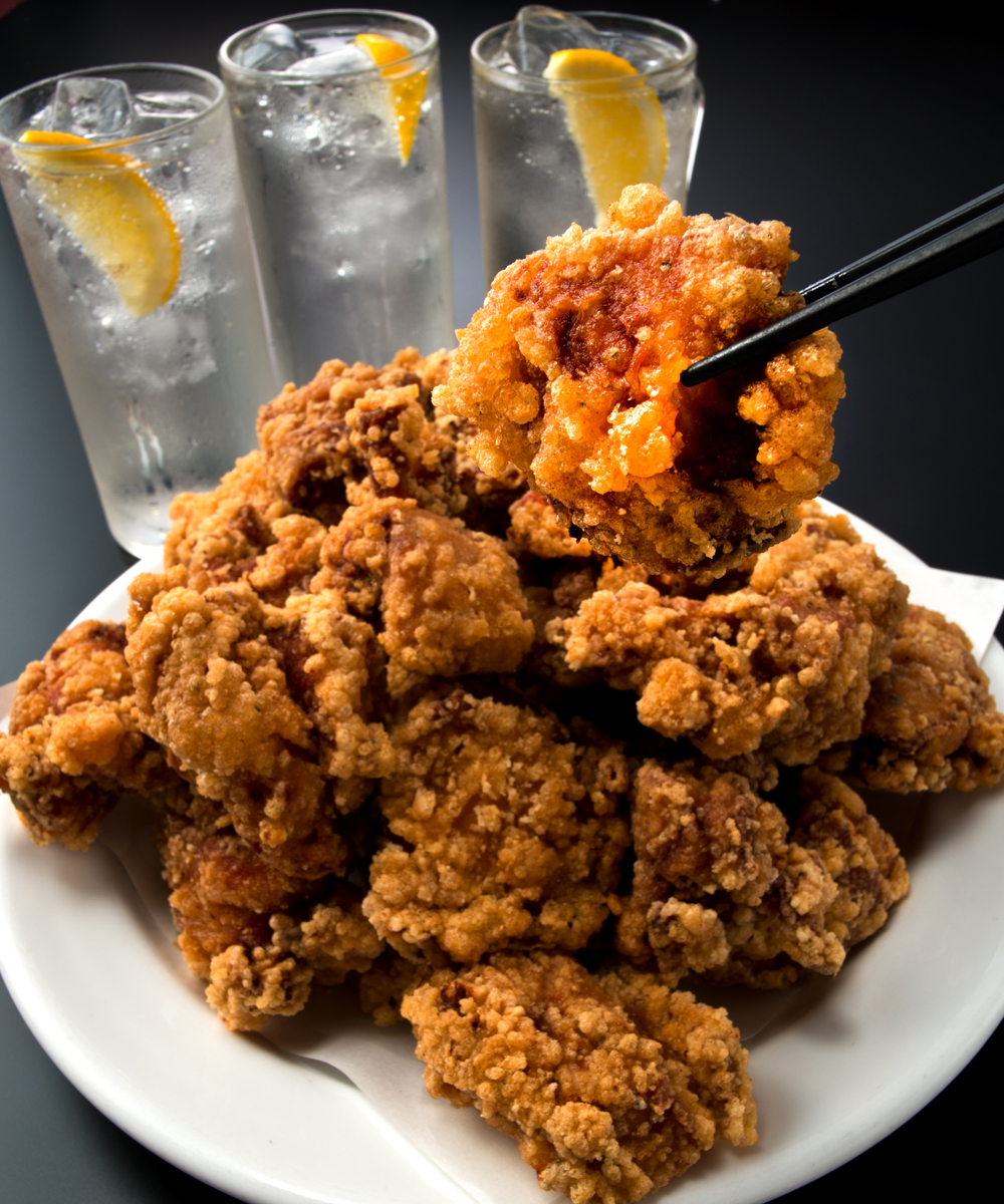 しっかり醤油味が人気の「鶏もも唐揚げ」は、もちろんアツアツの揚げ立てを何度でもおかわり、大ぶりの鶏肉の油がじゅわと口に広がる絶品です。