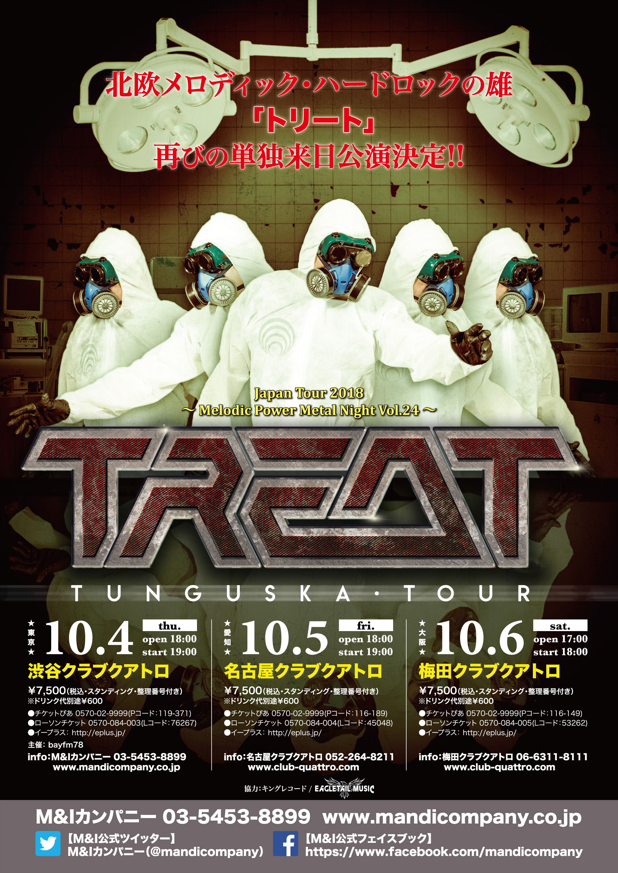 スウェーデン出身のTREATが大手『Mercury/PolyGram』からデビューしたのは1985年。当時、日本では北欧メタルがブームとなっており、その中で一際ポップなサウンドでデビューしたTREATは“ポストEUROPE”的な存在として注目を集めた。1987年の3rd「DREAMHUNTER」ではロバート・アーンルンド<vo>、アンダース・ヴィクストロム<g>、ジェイミー・ボーガー<ds>、パトリック・アッペルグレン<key>を含む黄金のラインナップとなり、ヨーロッパ諸国でも好セールスを記録し、続く1990年の4th「ORGANIZED CRIME」では日本でも本格的にブレイクして、同年夏に初来日公演も実現した。