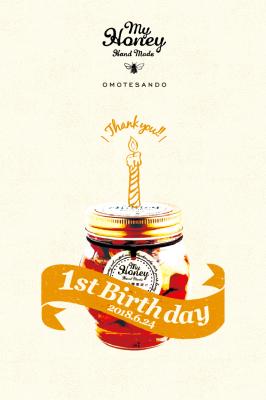 主力商品の「ナッツの蜂蜜漬け」をメインに、乳製品・砂糖不使用のハニーチョコ「BOUDDICA」や、GI値28(低GI食品)の「アカシアハニー」など、MY HONEYの商品をフルラインナップでご覧いただける表参道本店が、おかげさまで6月24日(日)にオープン1周年を迎えました。日頃の感謝の気持ちを込めて、1周年期間中は全品10%OFFなどお得なキャンペーンを開催させていただきます。