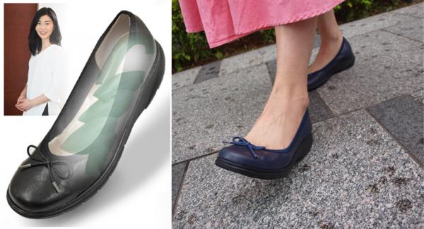 デザインは、普段の生活の歩行シーンで違和感なく使用できるローヒールのパンプスタイプ。