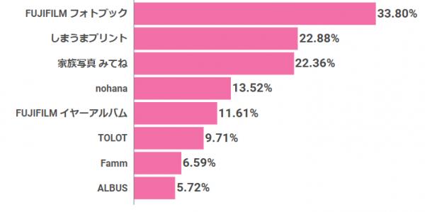 また今回は合わせて、代表的な「写真保存・印刷サービス」の認知度についても調査を行った。その中で、まだ「サービスの検討をしたことがない」と回答した人の認知度は以下の通りであった。
