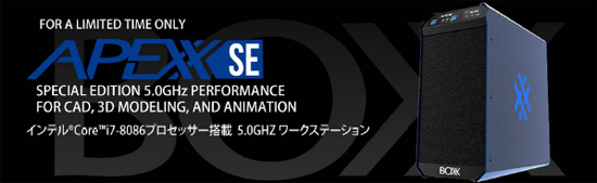 BOXX Technologies.(米国 テキサス州 オースティン)製品の国内販売元、トーワ電機株式会社 BOXX事業部(本社:宮城県仙台市)は、Intel創業50周年記念、およびIntel 8086プロセッサー発売40周年記念モデルとして発売された、第8世代インテル(R) Core(TM) i7-8086Kプロセッサー Limited Editionを搭載した限定モデル、APEXX Special Edition(以下:APEXX SE)の発売を本日6月27日(水)より開始します。APEXX SEは、搭載する5.0GHz動作クロックパフォーマンスを液体冷却によってコントロールすることで静音性を保ち、Autodesk 3ds Max、Inventor、Maya、REVITをはじめSolidworks、CATiAなど、主要な3D CADや3Dモデリングアプリケーションに対して驚異的なパフォーマンスと安定した動作をオフィスのデスクサイド環境で提供します。