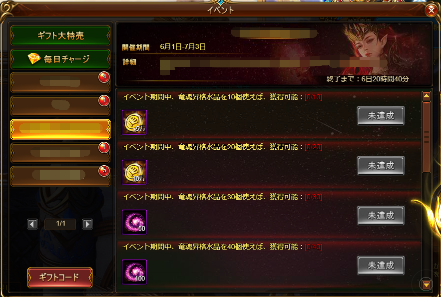 イベント期間中、ログイン日数に応じた特典を配布致します。戦竜の育成に欠かせないアイテムを多数GETできるチャンスとなっております。