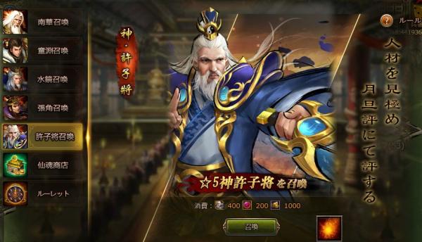 イベント期間中、必要なアイテムや資源を使用して、許子将を含めた仙将が召喚可能になります。また、強化資源を入手できる仙将ルーレットや、強化に必須な仙丹などを交換できる仙魂商店も開放されます。