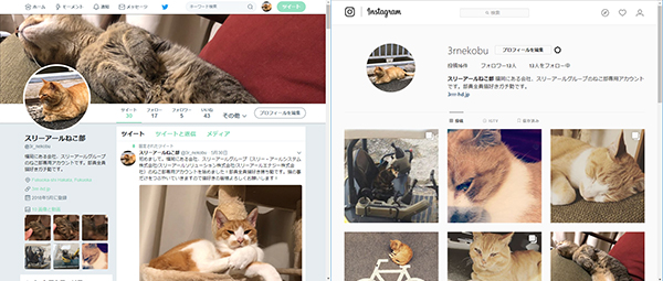 その他には、Twitterやインスタグラムにねこ部専用ページを開設し、社員が飼育している猫の紹介やオフィスで猫を飼っている企業アカウントや猫の保護活動を行っている方のアカウントをフォローするなどしており、今後も世界中の猫好きの方々との交流を行うほか、機会があればねこ部員で猫カフェに赴き、体験レポート等を配信したいとしています。