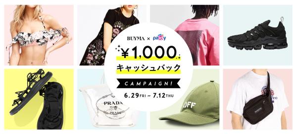 株式会社Paidy(東京都港区、代表取締役社長:杉江 陸、https://paidy.com/、以下、Paidy(ペイディー))は、株式会社エニグモ(代表取締役最高経営責任者:須田将啓 本社:東京都港区、東証マザーズ:証券コード 3665、以下、エニグモ)が運営する、ソーシャル・ショッピング・サイト『BUYMA(バイマ)』と共同で「BUYMA x Paidy 1,000円キャッシュバックキャンペーン」を6月29日(金)から7月12日(木)まで開催いたします。