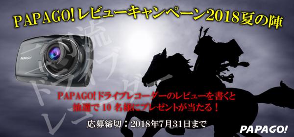 PAPAGO JAPAN株式会社は、豪華賞品が10名様に当たる!「PAPAGO!レビューキャンペーン2018年夏の陣」を7月31日(火)まで実施いたします。詳細はキャンペーン特別ページをご覧ください。