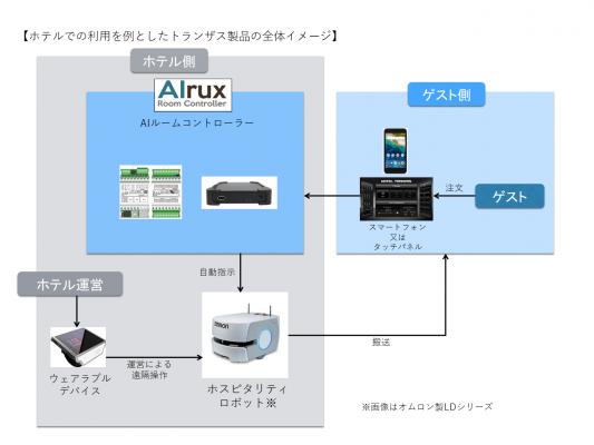 株式会社トランザス(本社:神奈川県横浜市、代表取締役:藤吉 英彦、以下トランザス)は、オムロン株式会社のロボット(LDシリーズ)をベースとし、近年の人手不足の解消のため、ホテルやレストラン等のホスピタリティ業務の無人化を目指し、ホスピタリティロボットの開発に着手することを本日決定いたしました。