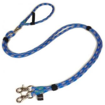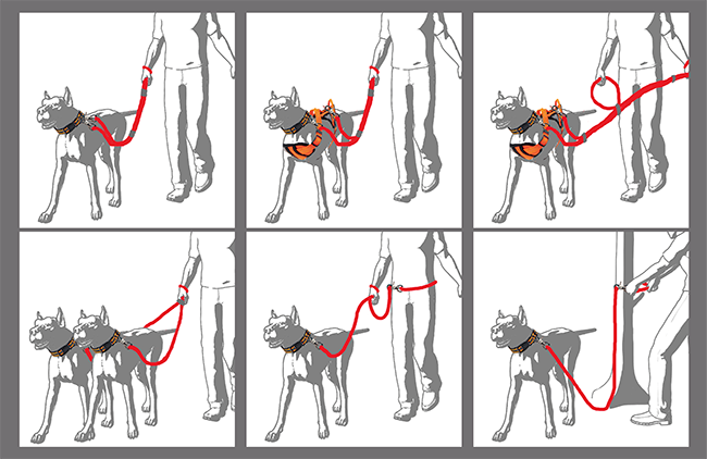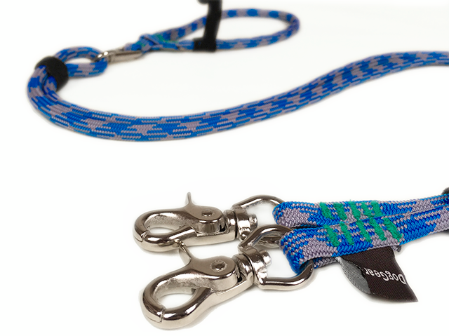 ●1本のロープを二つ折りにして先端に大型のレバースナップを2個装着しております。一般的なナスカンと比較してはずれにくい構造のレバースナップを首輪に2個あるいは首輪とハーネスに留めることで、愛犬が離れる危険性をほとんど起こらないレベルまで低減しました。