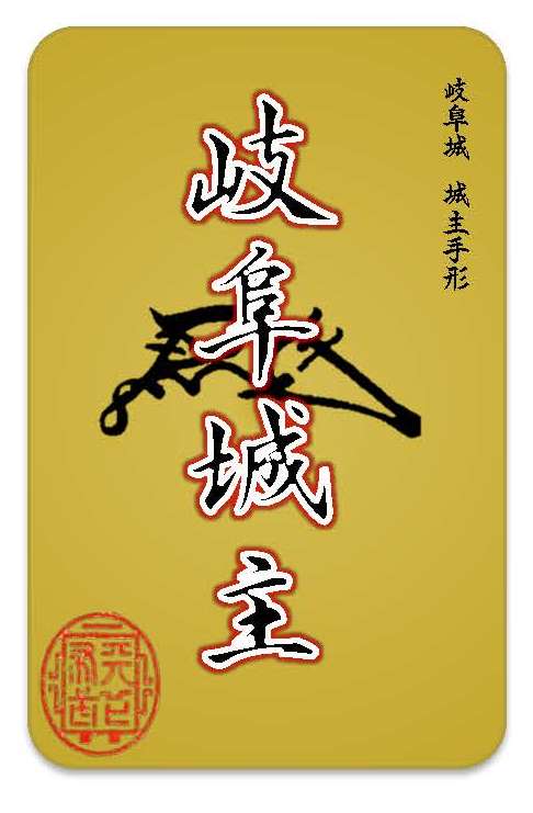 中でも目玉は、「岐阜城年間城主」になれる城主手形です。5万円以上の寄附で、寄附者ご本人と、同伴者1名の方が1年間岐阜城の入場と金華山ロープウェーの利用が無料になります。手形は名刺大で、城主だった織田信長公をイメージする金色に、サインにあたる花押と「天下布武」の印鑑がデザインされています。