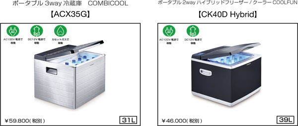 【ACX35G 】はAC100V/DC12Vに加えてカセットガスでのご使用が可能です。一般的な冷蔵庫に使用されているコンプレッサーやファンなどの駆動部品を一切必要としません。そのため、完全無振動・超静音の環境を実現します。寝室やリビングなど雑音が気になる場所でも、安心して快適にご使用いただけます。ACX35Gのガス燃焼部は、従来品 (RC1602EGC) と比べて冷却力が向上。さらに、着火もしやすくなり、風の影響も受けにくくなった為、電源のない屋外で活躍いたします。