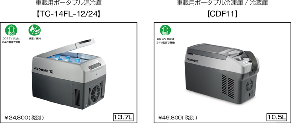 【TC-14FL-12/24】は、ペルチェ方式の冷却方式を採用しているため、コンパクトで且つ5.5kgと軽量。