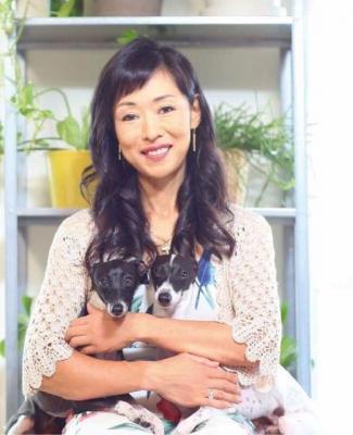 開発者の平山桂子医学博士と愛犬のイタリアン・グレーハウンド